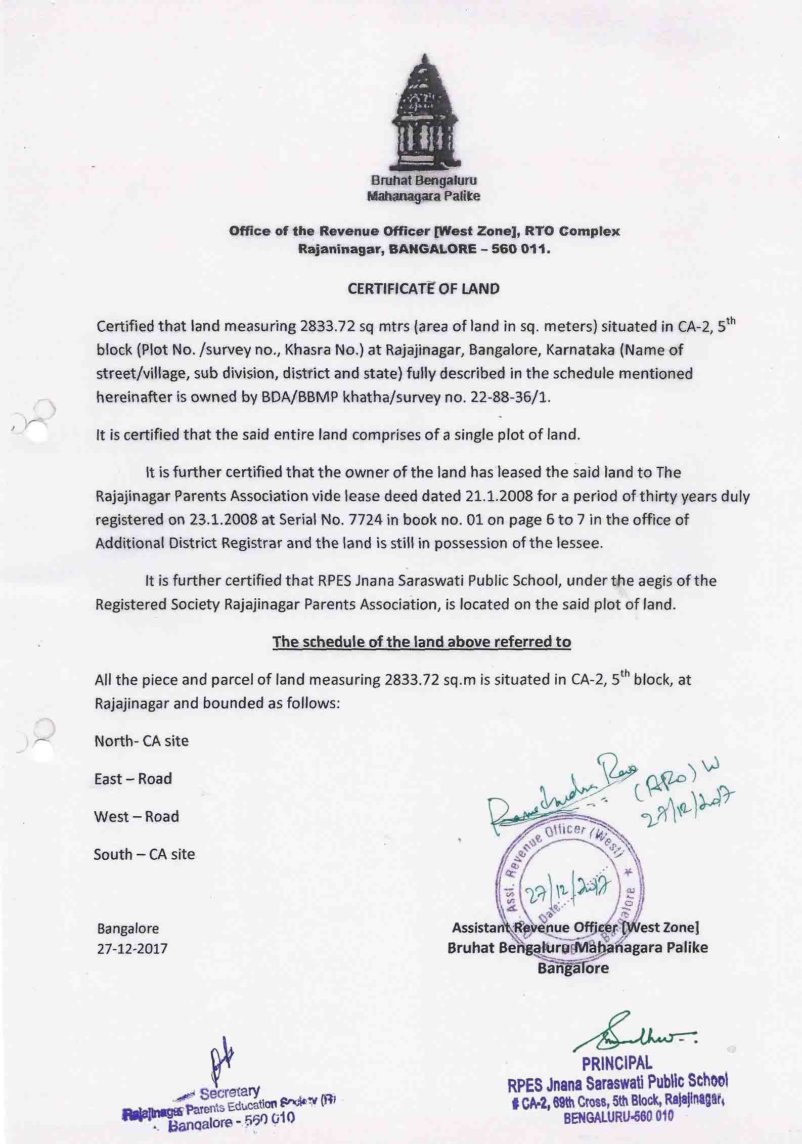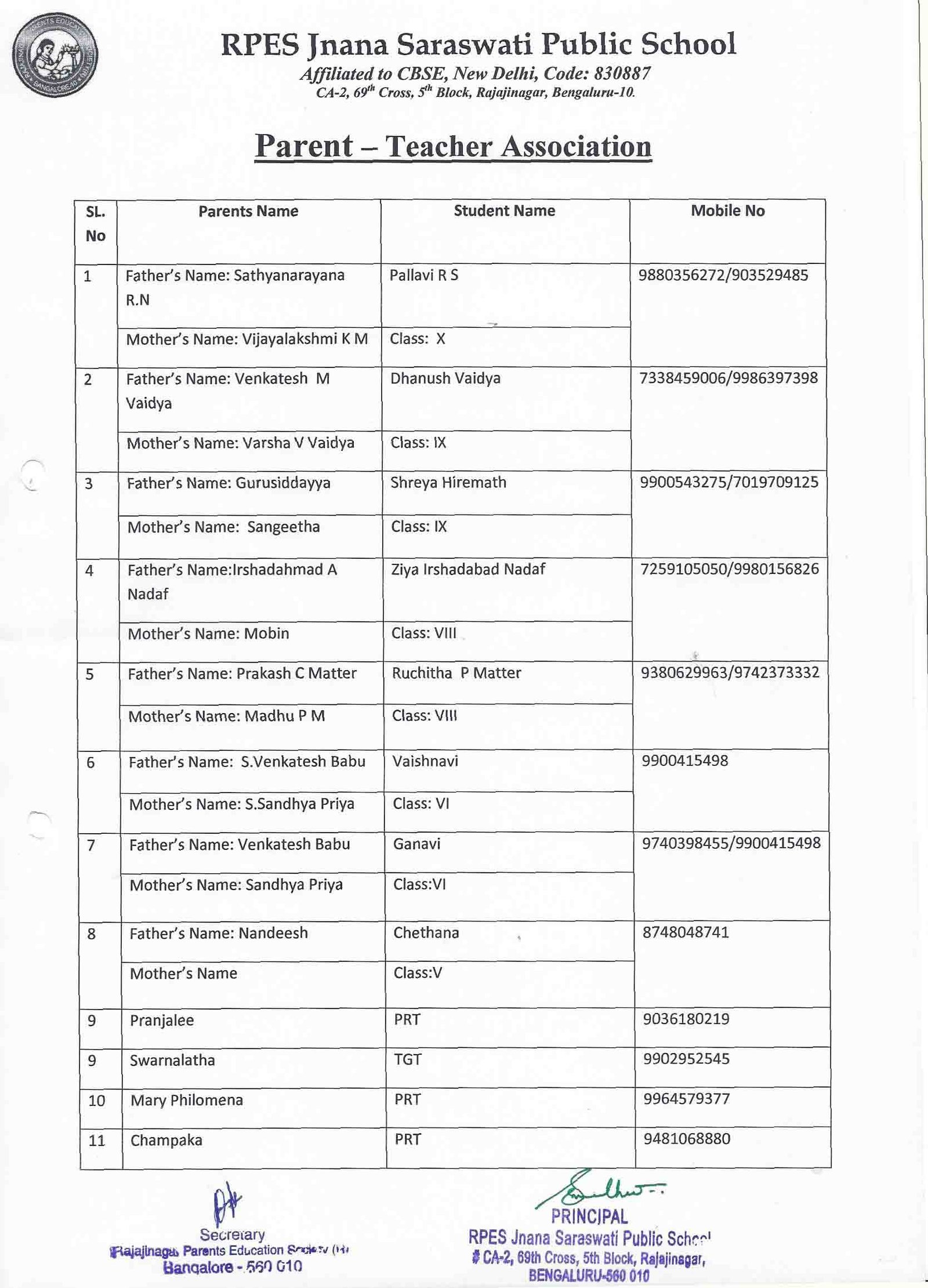 RPES JNANA SARASWATI PUBLIC SCHOOL,CA-2,69TH CROSS,5TH BLOCK,RAJAJI NAGAR,BENGALURU-560010